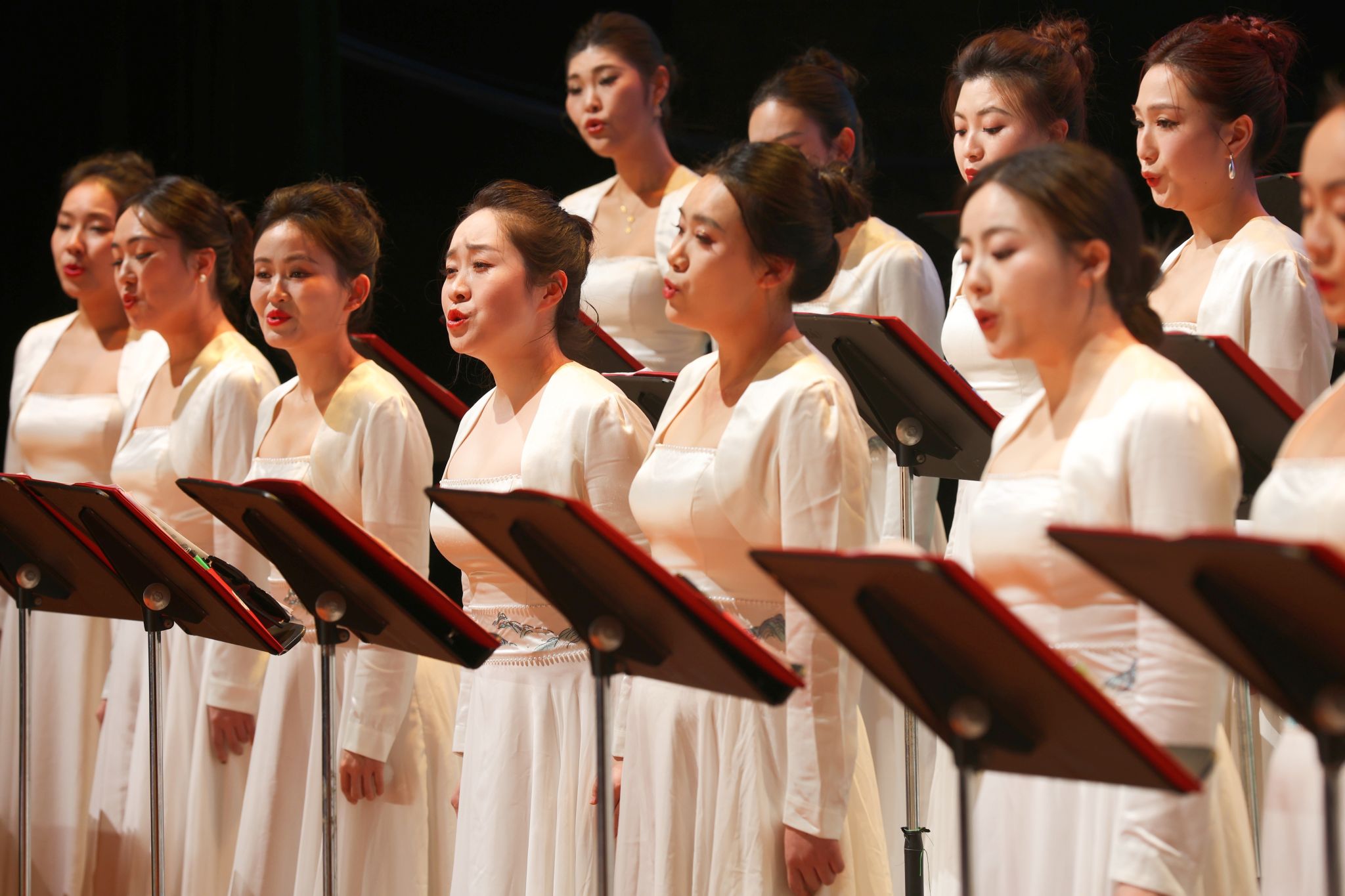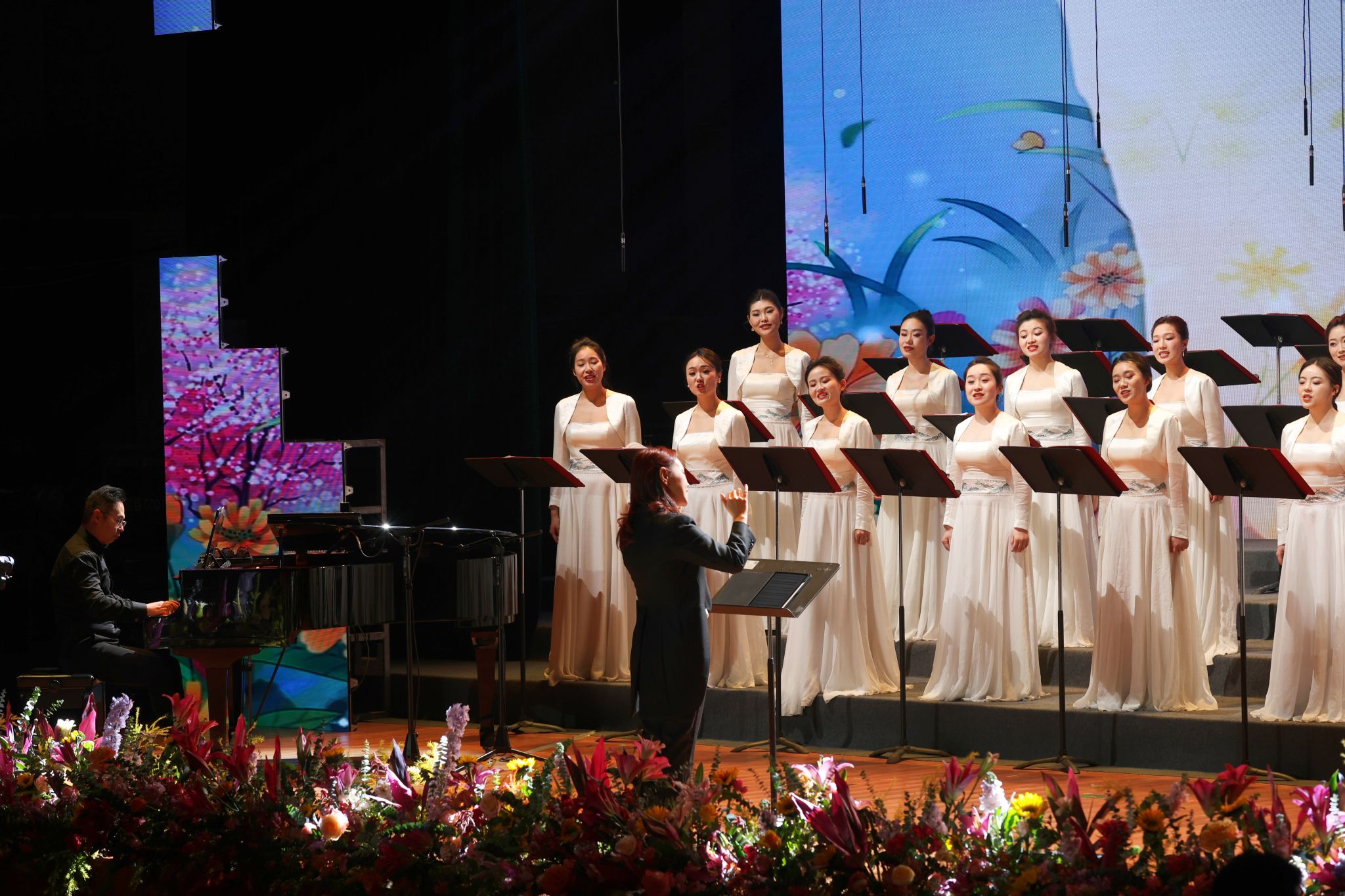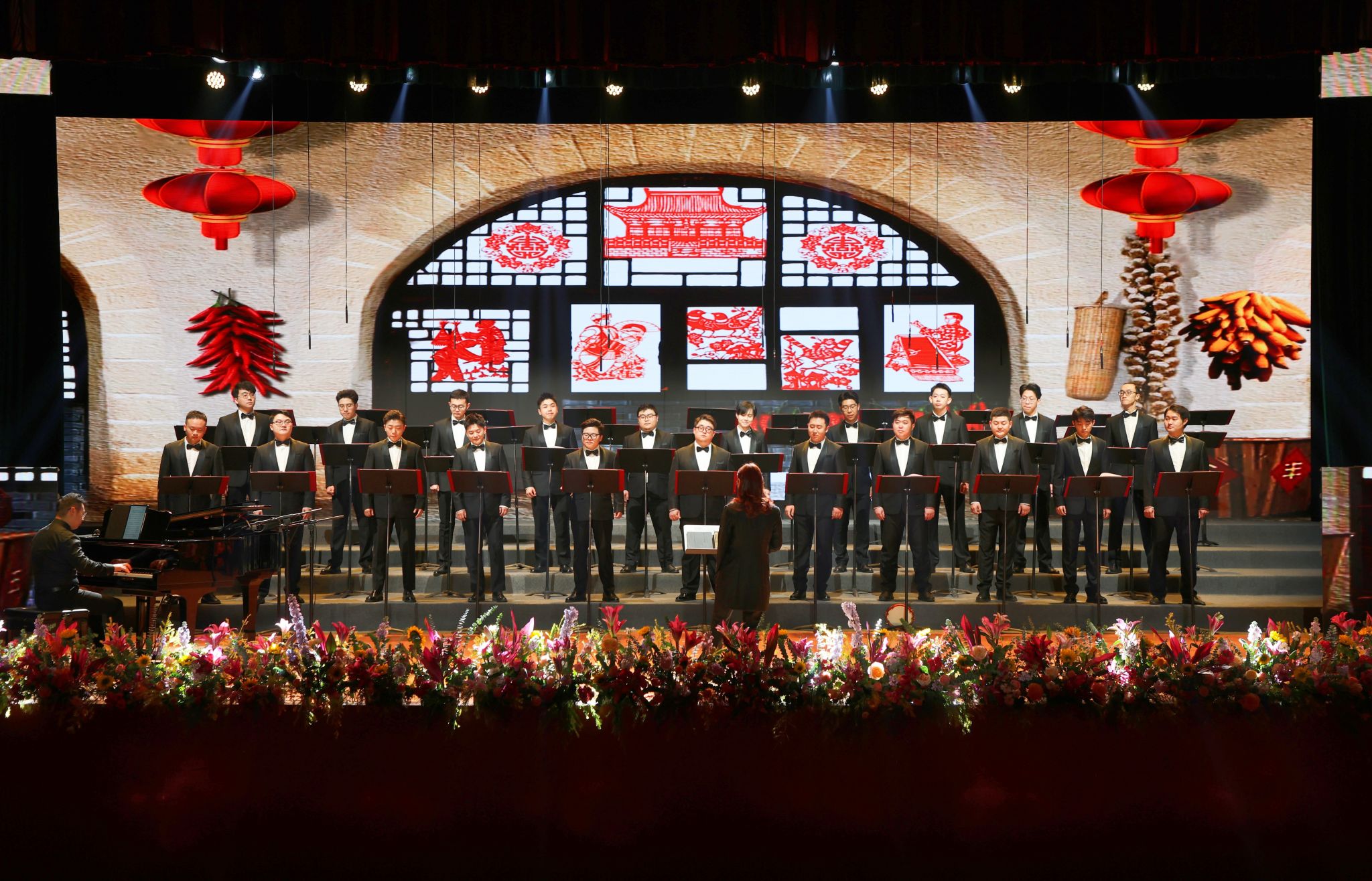 本场新年音乐会由英国365上市公司主办,特邀四川交响乐团合唱团倾情演绎。在青年指挥家柳秀妍、钢琴伴奏曾亮的指挥弹奏中,混声合唱《上春山》拉开序幕,轻快的旋律和精湛的演唱瞬间点燃现场氛围。随后,混声合唱、女声合唱、男声合唱等多种演唱形式依次上演,每一首歌曲都以其独特的魅力和深刻的内涵,赢得了现场观众阵阵掌声。