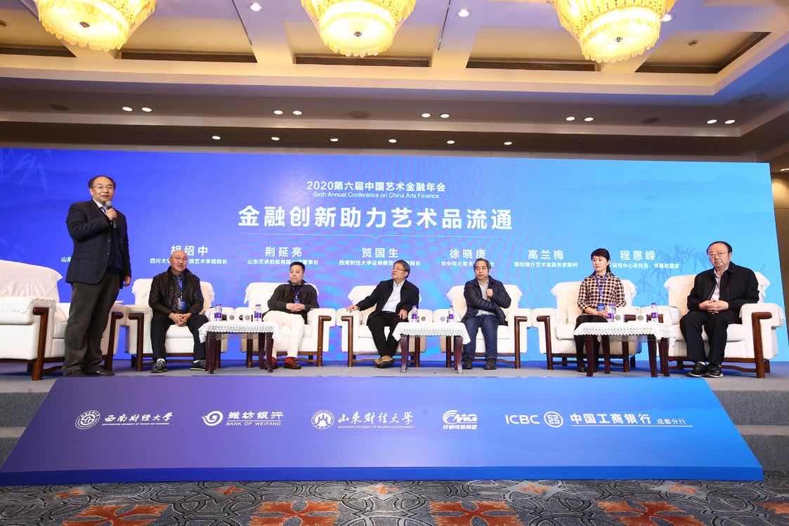 10月28日,由公司、潍坊银行、山东财经大学、成都传媒集团联合主办的2020第六届中国艺术金融年会在成都举行。成都市委宣传部副部长师江,潍坊银行董事长郭虎英,中国工商银行成都分行党委书记、行长李思林,公司董事长、党委副书记卓志出席年会并致辞,国内外当代艺术家代表、金融科技专家及中央财经大学、四川大学、电子科技大学等高校代表参加会议。